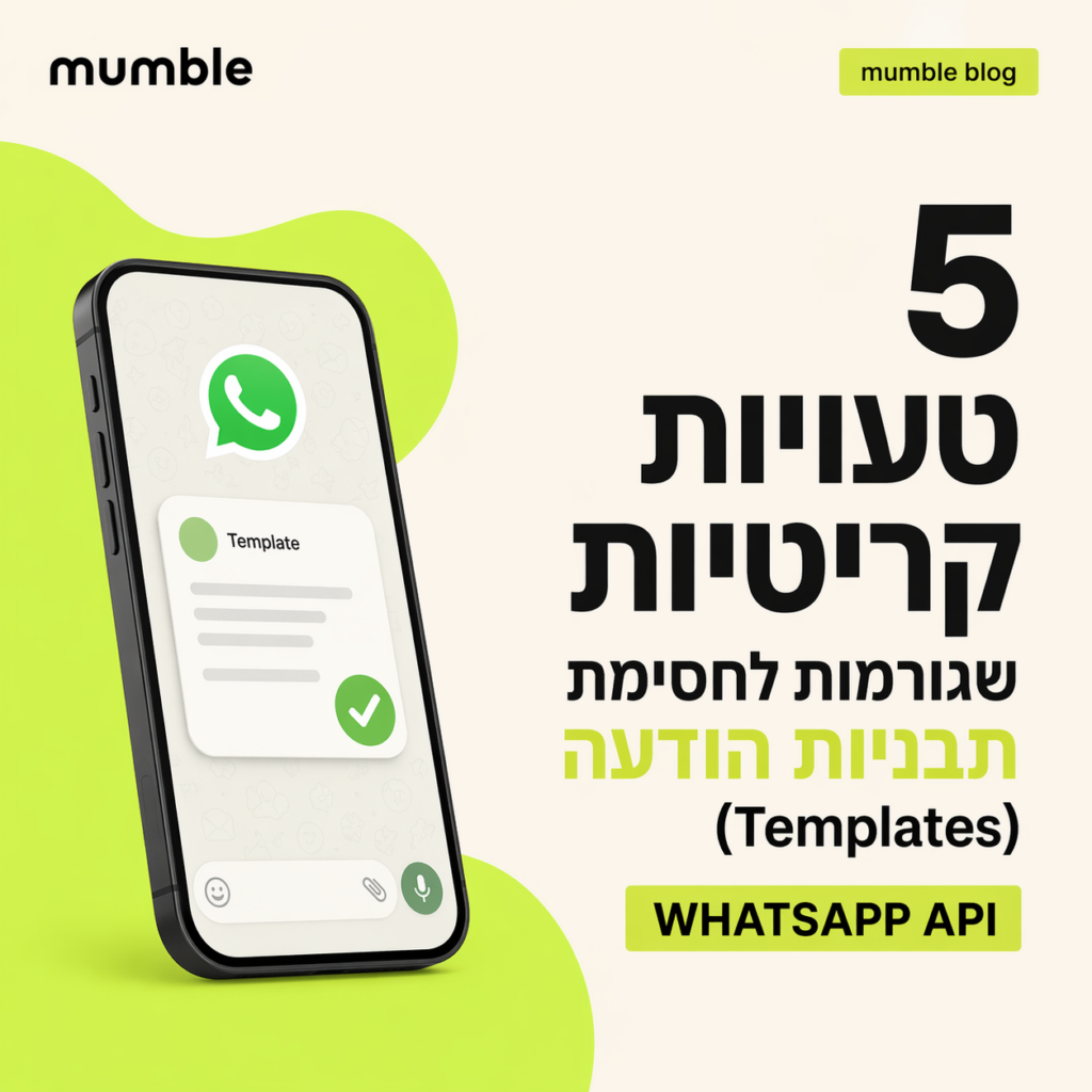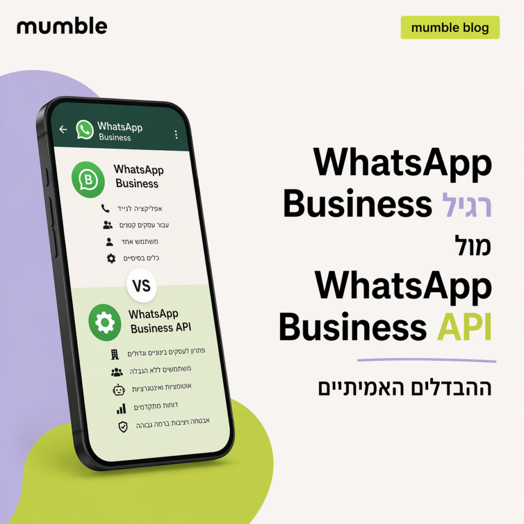 וואטסאפ הוא ערוץ התקשורת מספר 1 בישראל. מערכת וואטסאפ לעסקים – מאמבל (Mumble) מאפשרת לשלב שירות לקוחות, אוטומציה, צ׳אטבוטים ותפוצה שיווקית – הכל במקום אחד, רשמי ומאובטח. במדריך הזה נסקור מה זה WhatsApp Business API, למי זה מתאים, כמה זה עולה, ואיך מתחילים נכון. תוכן העניינים למה עסקים בישראל צריכים מערכת וואטסאפ לעסקים מה זה […]